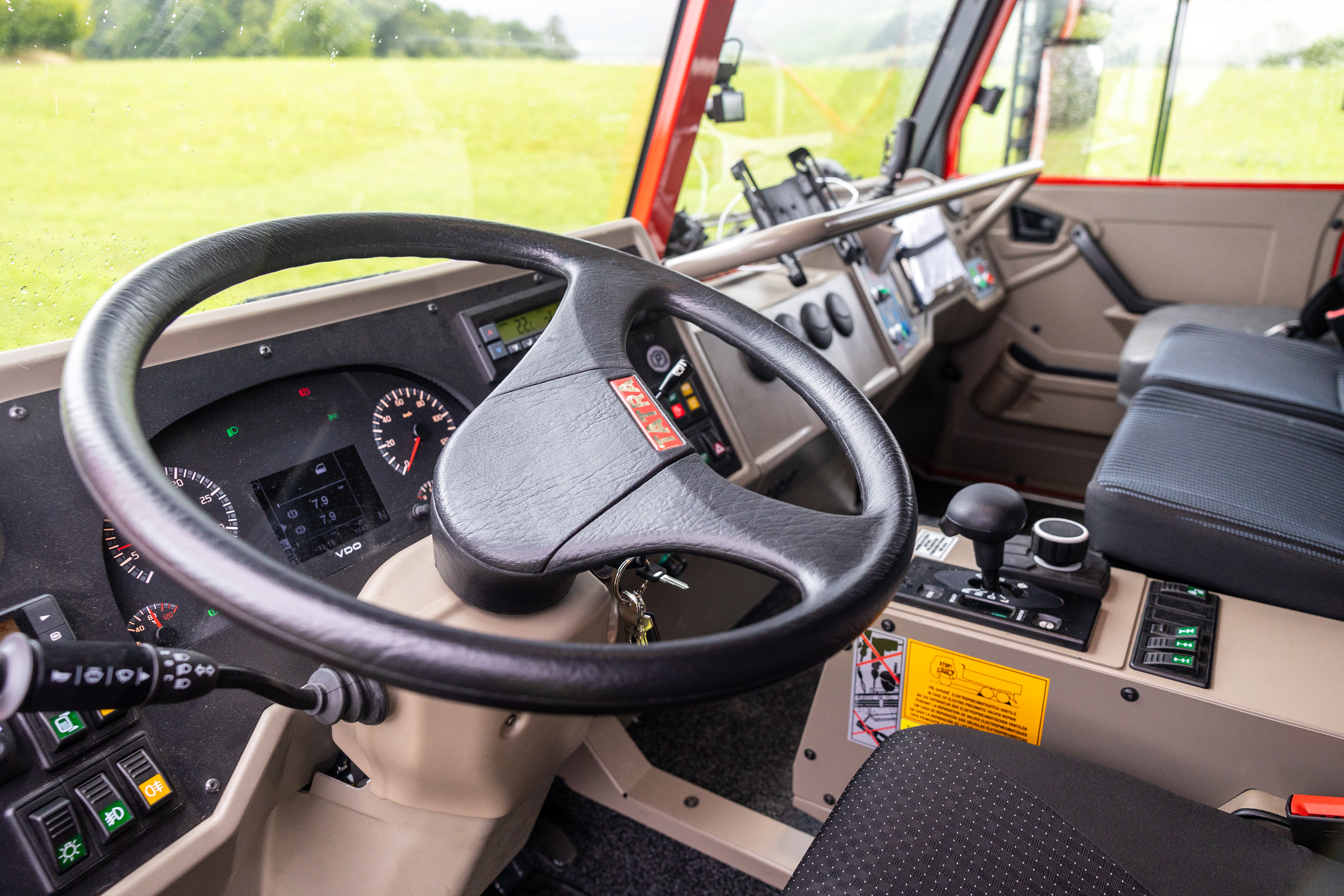 Jednoprostorová nedělená kabina se čtyřmi dveřmi je určena pro převoz pěti osob. Mezi bezpečnostní prvky patří kromě sedmi airbagů také celá škála jízdních asistentů pro jízdu v terénu i na pozemních komunikacích. Okna jsou vpředu i vzadu ovládána elektricky, stejně jako vnější zpětná vyhřívaná zrcátka. Manuální převodovka je šestistupňová. Dopravní automobil je v prostoru místa pro nástup strojníka vybaven zásuvkou pro dobíjení a konzervaci baterií.