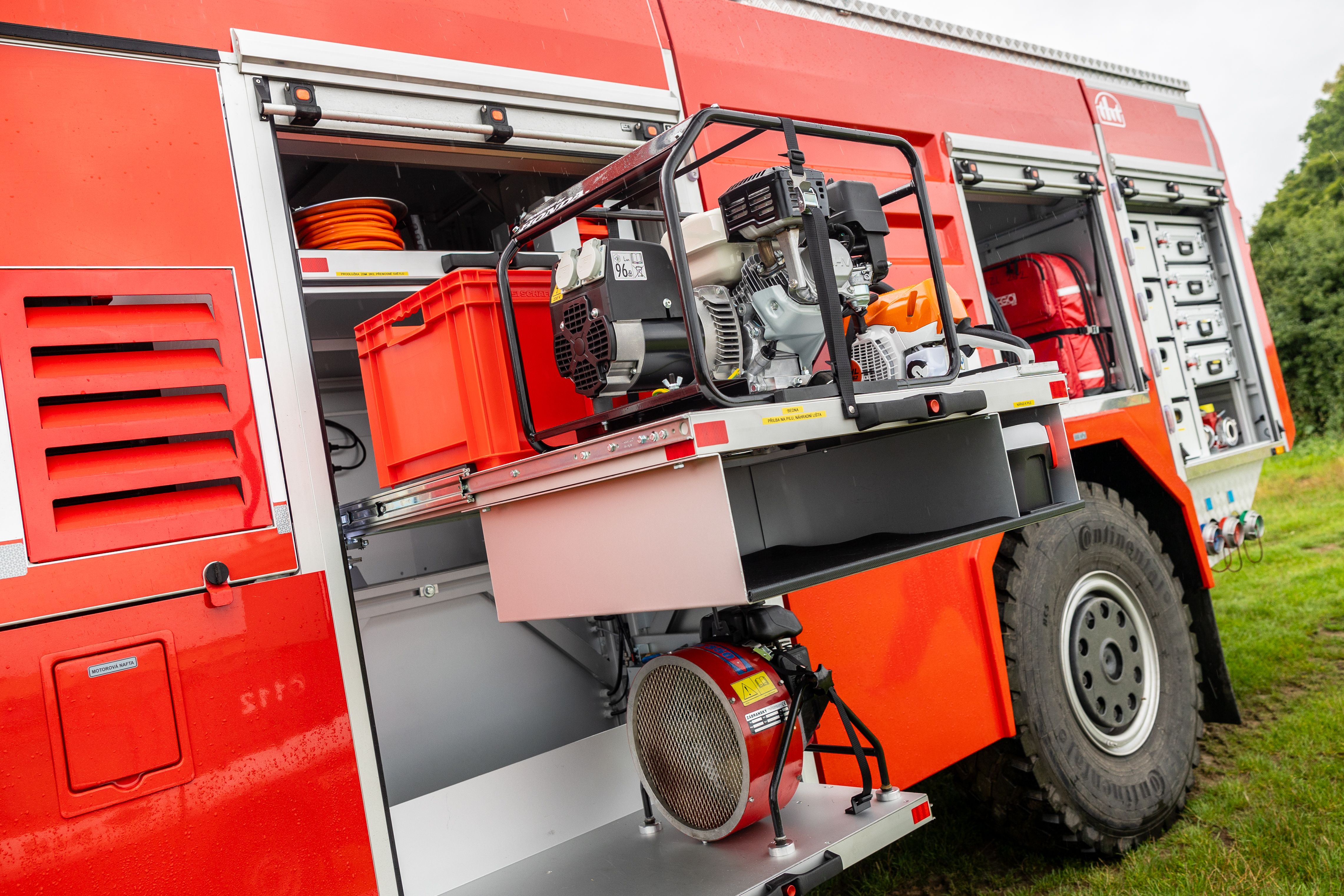 Ve vybavení je motorová řetězová pila, elektrické kalové čerpadlo, elektrocentrála, přetlaková ventilace, osvětlovací stožár o výšce 5 metrů se čtyřmi světlomety LED 24 V s celkovým světelným tokem 30 000 lumenů. Přední část kabiny je doplněna o elektrický lanový naviják s tažnou sílou ve vodorovné rovině 50 kN (5,1 tun). CAS je konstruována pro brodění s navijákem.